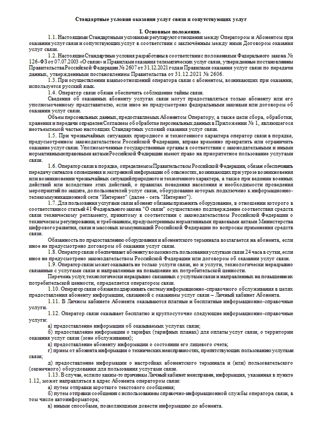 Стандартные условия оказания услуг связи и сопутствующих услуг
