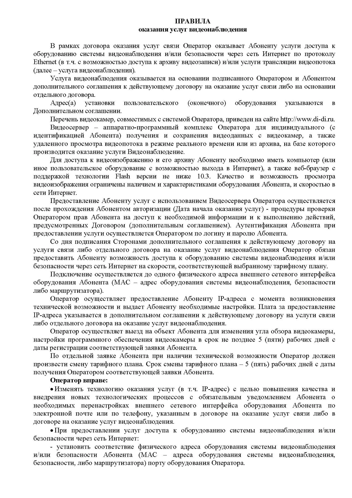 Правила предоставления услуги «Видеонаблюдение»